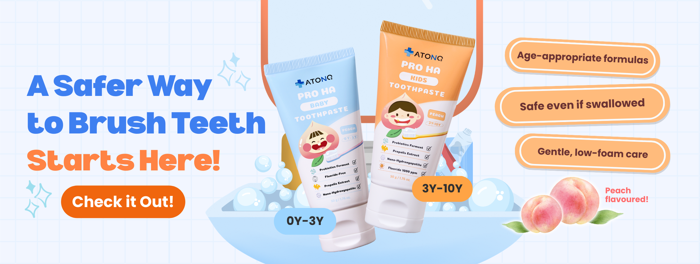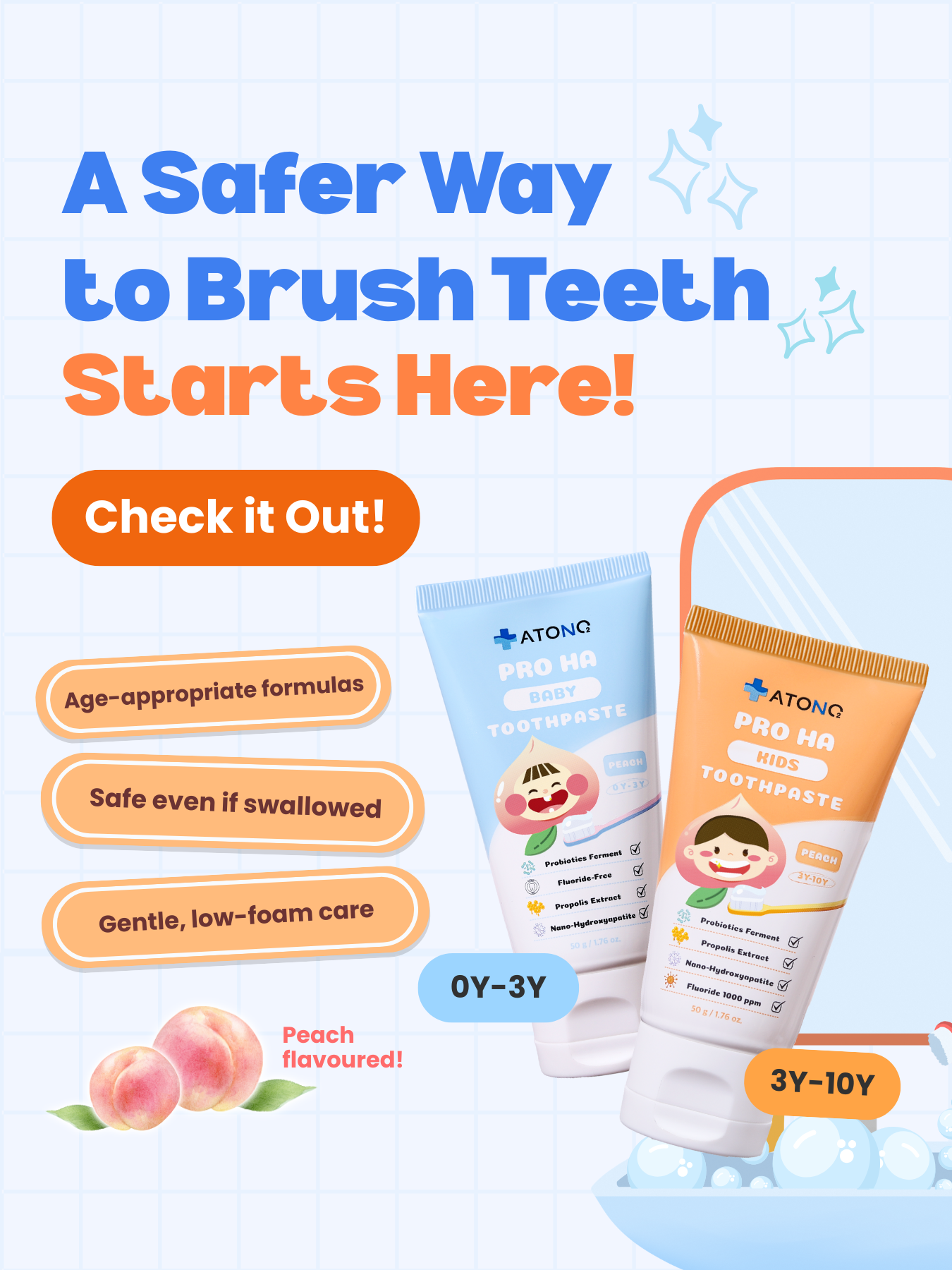 By AtonoÂČAtonoÂČ Pro HA Kids Toothpaste is made for babies and children with age-appropriate formulas â fluoride-free for babies, gentler fluoride for older kids,