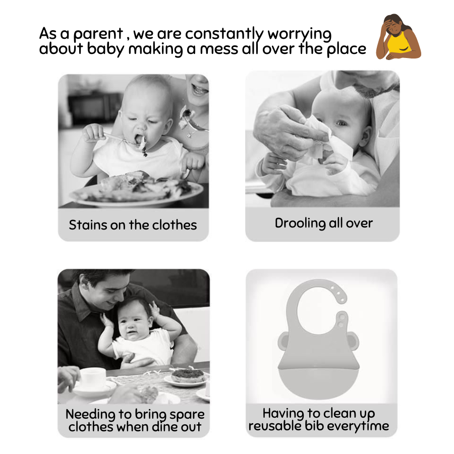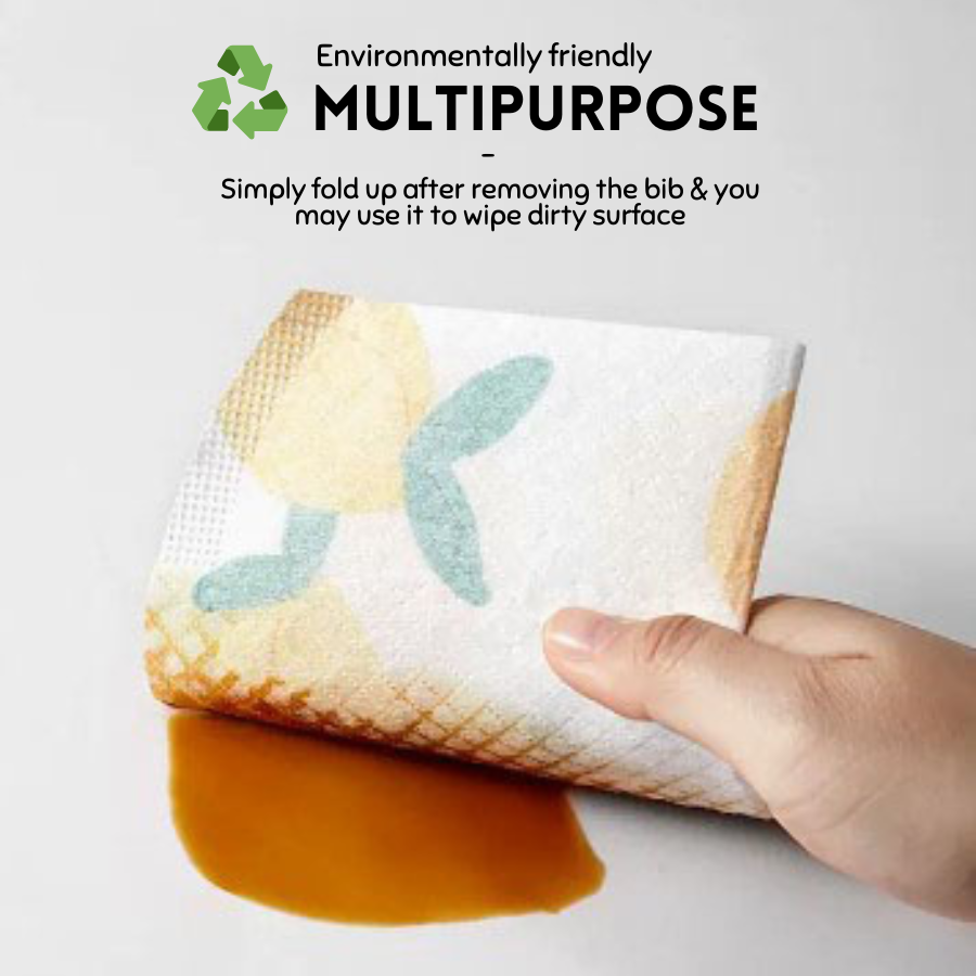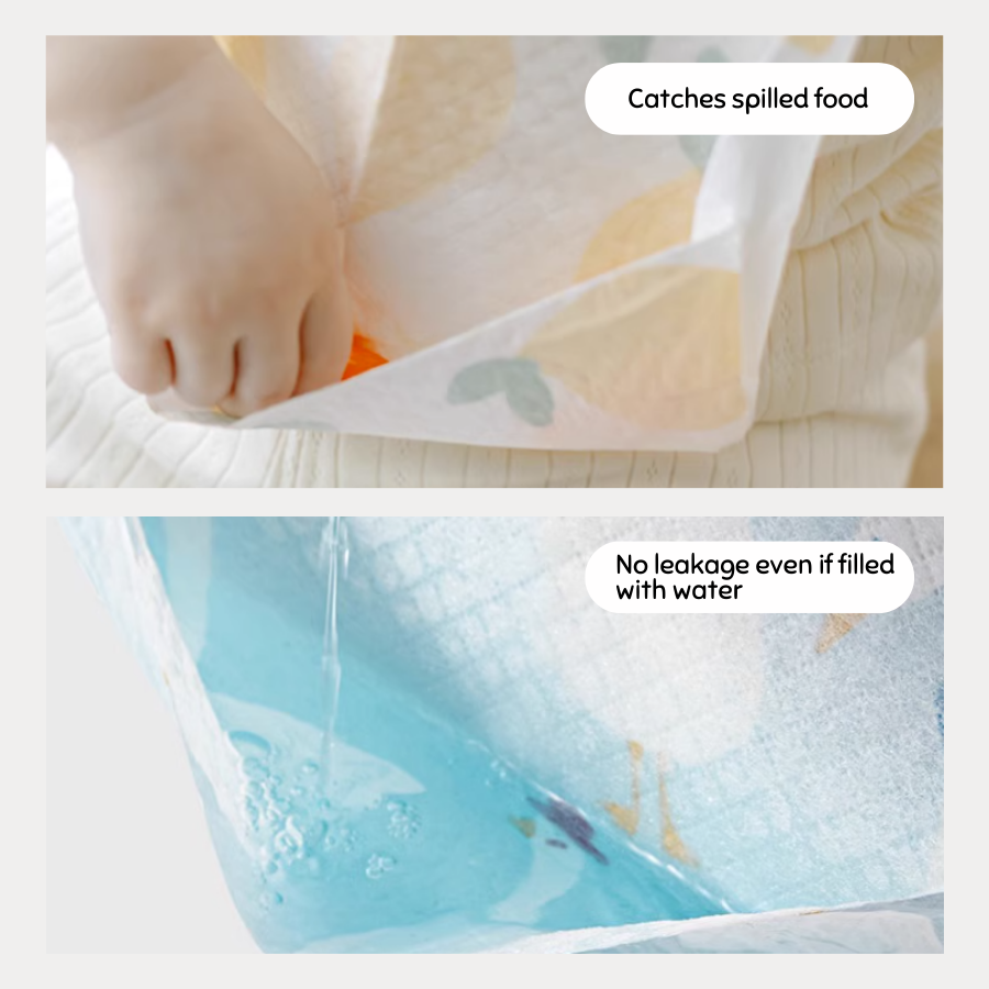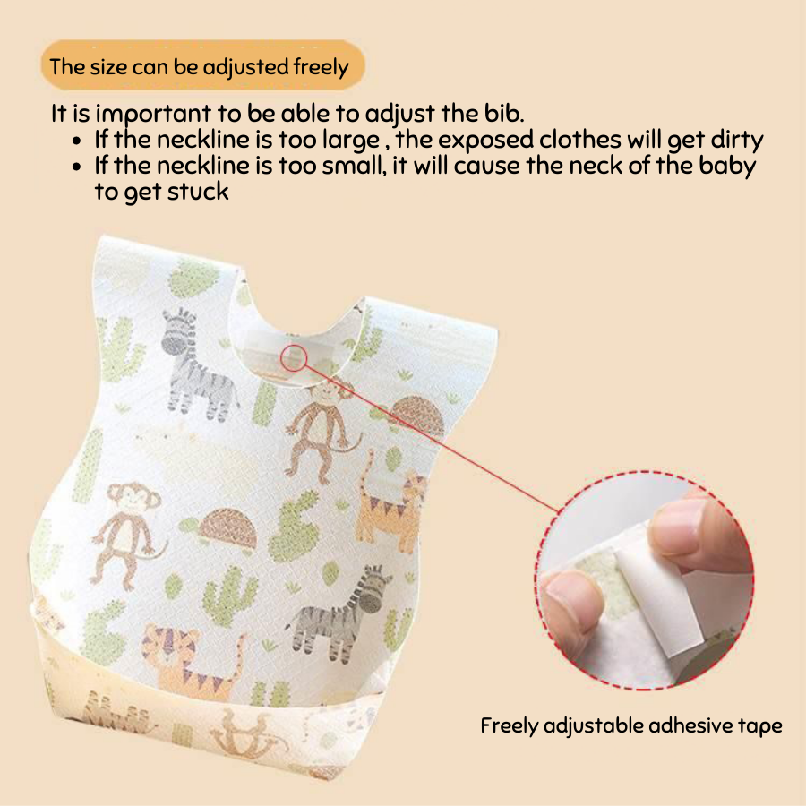 Self-adhesive tab at the back of the bib for easy fitting and adjustment for 6+ months onwads.