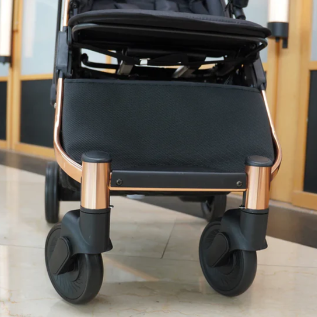 With its sleek dimensions of 44 x 25 x 60cm (small, with a feather-light weight of just 6.5kg / 7+ kg with accessories), this Bloom Travel Stroller is your perfect companion for city adventures and busy days.