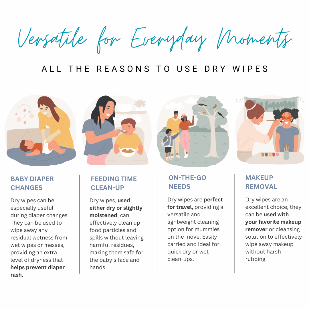 I love that I can use them dry or wet, depending on what I need. They're perfect for cleaning up after meals, diaper changes, or just a quick wipe of my baby's face. Plus, they’re chemical-free, so I feel good about using them every day.